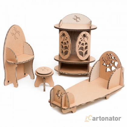 Размер:Шкаф 11 х 19 х 27,5 см, кровать 32,5 х 15 х 17,5 см, туалетный столик 9 х 14,5 х 2,5 см, табуреточка 9,5 х 8 х 8 см