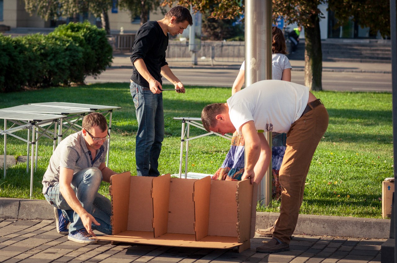 Реакция была самой разной: восхищенной, удивленной, иногда скептической. Были и те, кто уже знал о существовании мебели из картона. Не было только равнодушных. Сначала мы устали отвечать на вопрос «А стул меня выдержит?», но потом просто сели сами, и все стало на свои места ☺.